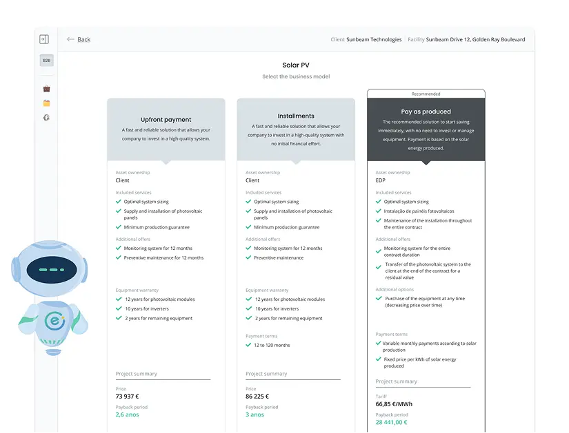 Calculate PPAs, Solar-as-a-Service and financed offers in real time - centrally governed and auditable.